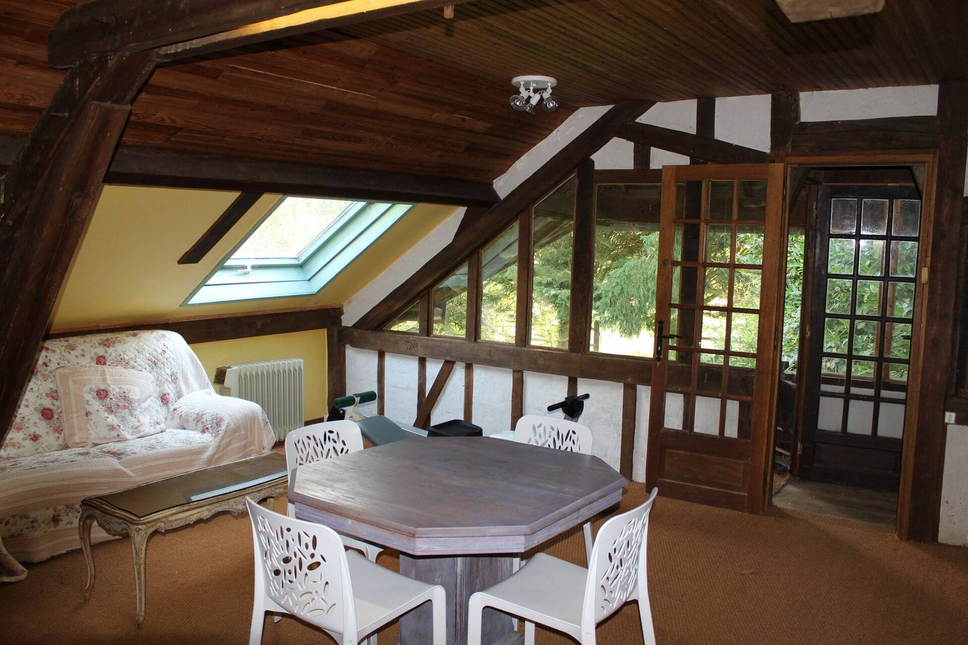 Cette propriété de charme se compose d'une chaumière Normande à pans de bois comprenant :