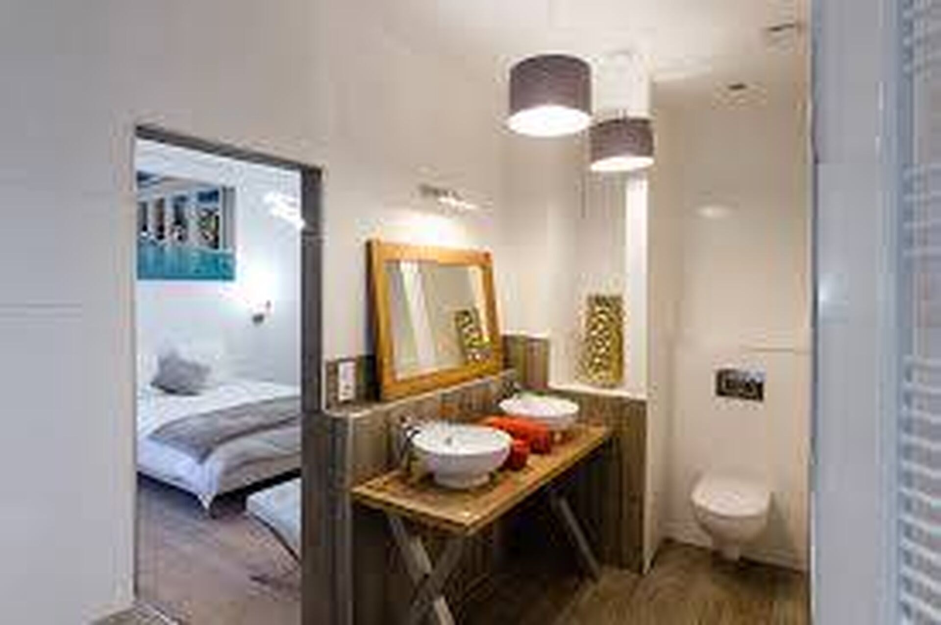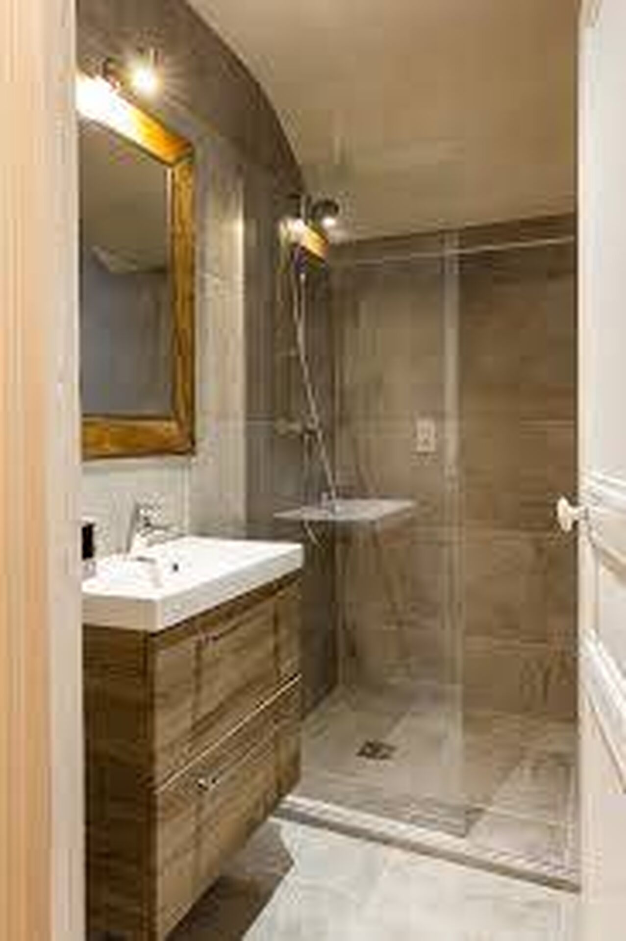 - A l'étage: un palier dessert un wc, une salle de douches et deux chambres individuelles dont une avec balcon et vue sur le terrain de Polo de Deauville.